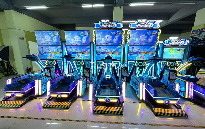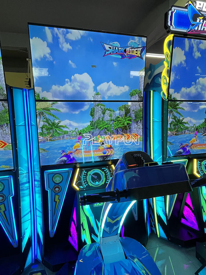 Simulateur de course de jet ski à monnayeur avec écran large et mouvements dynamiques pour grand parc sportif intérieur
