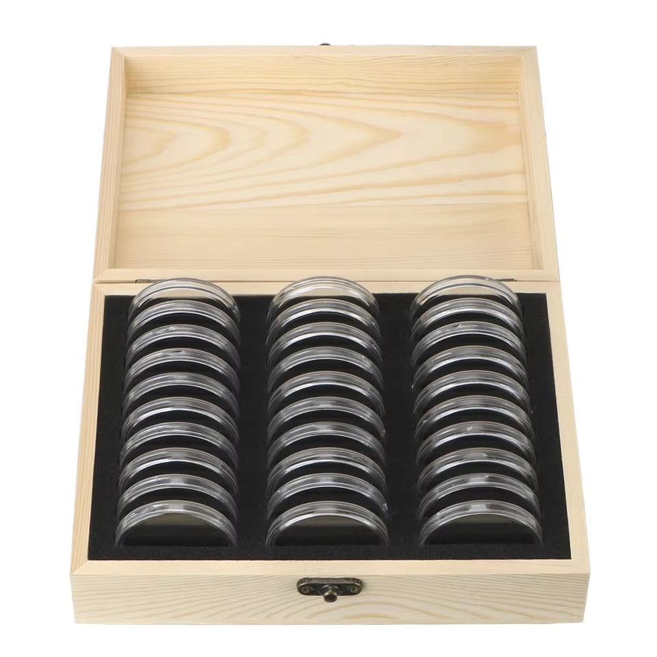 Boîte de rangement pour pièces de monnaie avec coussin de réglage 20_30_50_100PCS Boîte de collection de pièces commémoratives en bois réglable Porte-capsules