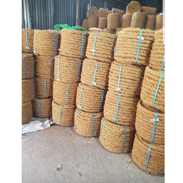 Coir rope from coconut fiber suitable for eco packaging horticulture furniture making and plant climbing arrangements