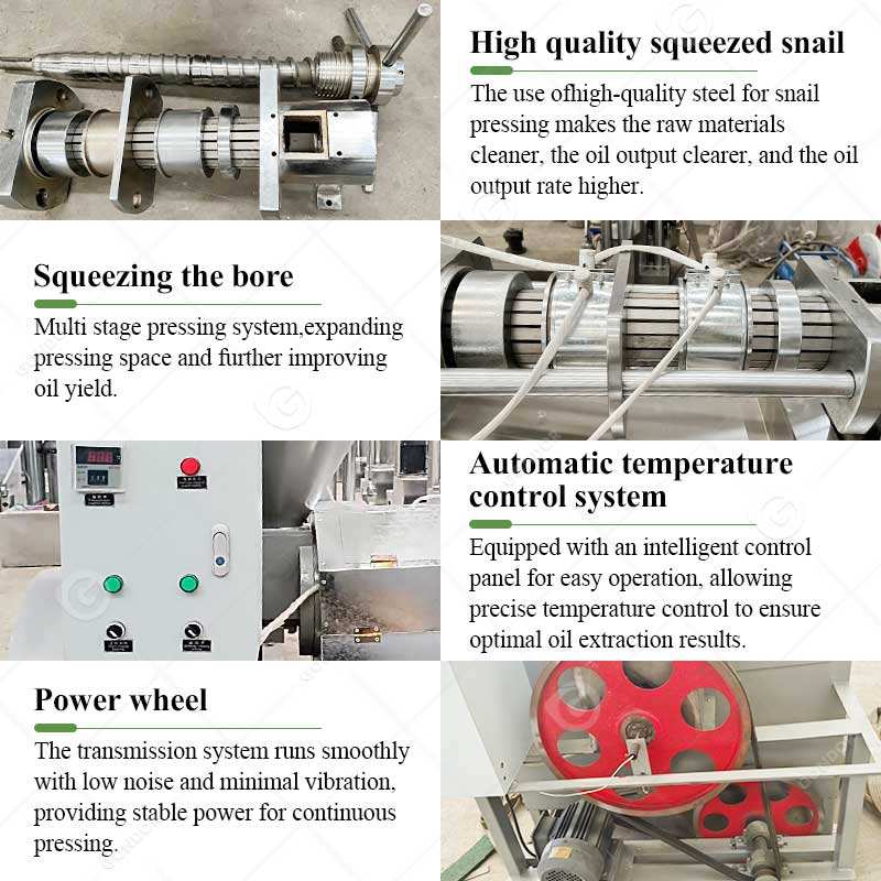 Taux théorique de rendement en huile:≥ 95 % (par rapport à la teneur en huile de la matière première)