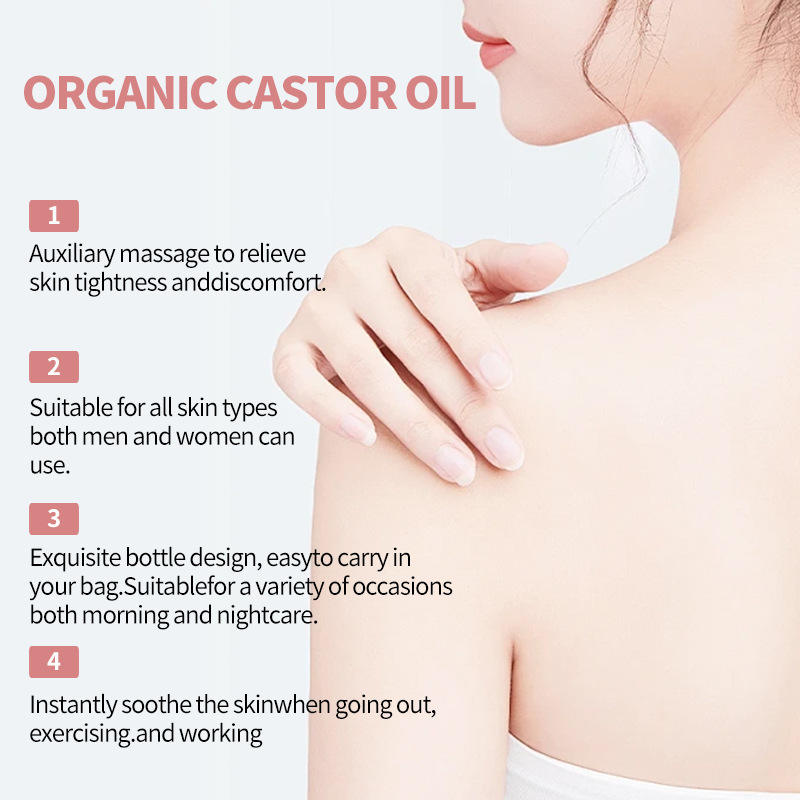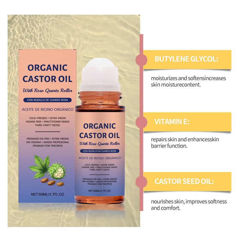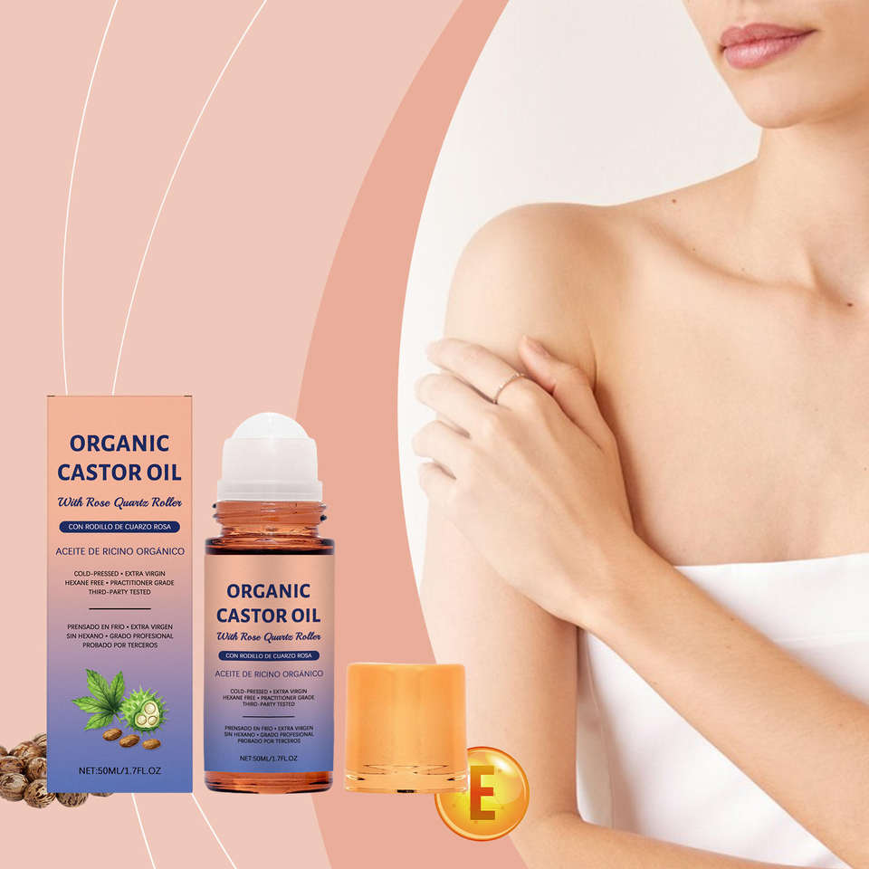 Huile de ricin extra vierge pressée à froid, bille apaisante, hydratation douce pour la peau, soin quotidien portable pour le corps, quartz rose