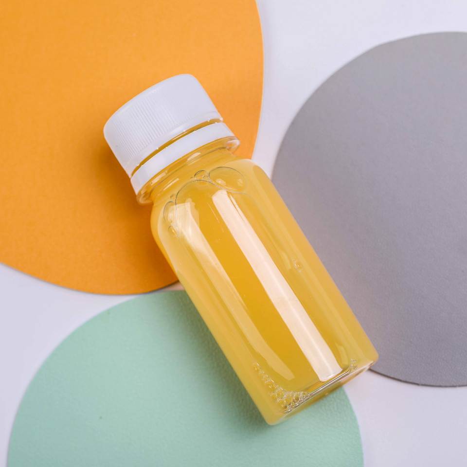 Bouteilles de jus de citron et de Cayenne pressées à froid, bouteilles de jus de gingembre et de Cayenne, bouteilles de santé et de bien-être biologique, bouteilles recyclables