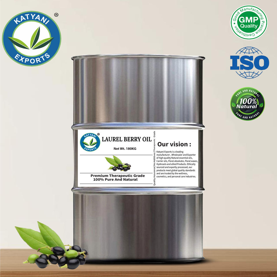Huile de baies de laurier pressée à froid 100% pure et naturelle - Huile de Laurus Nobilis - Fournisseur en gros et exportateur en vrac - Par Katyani Exports