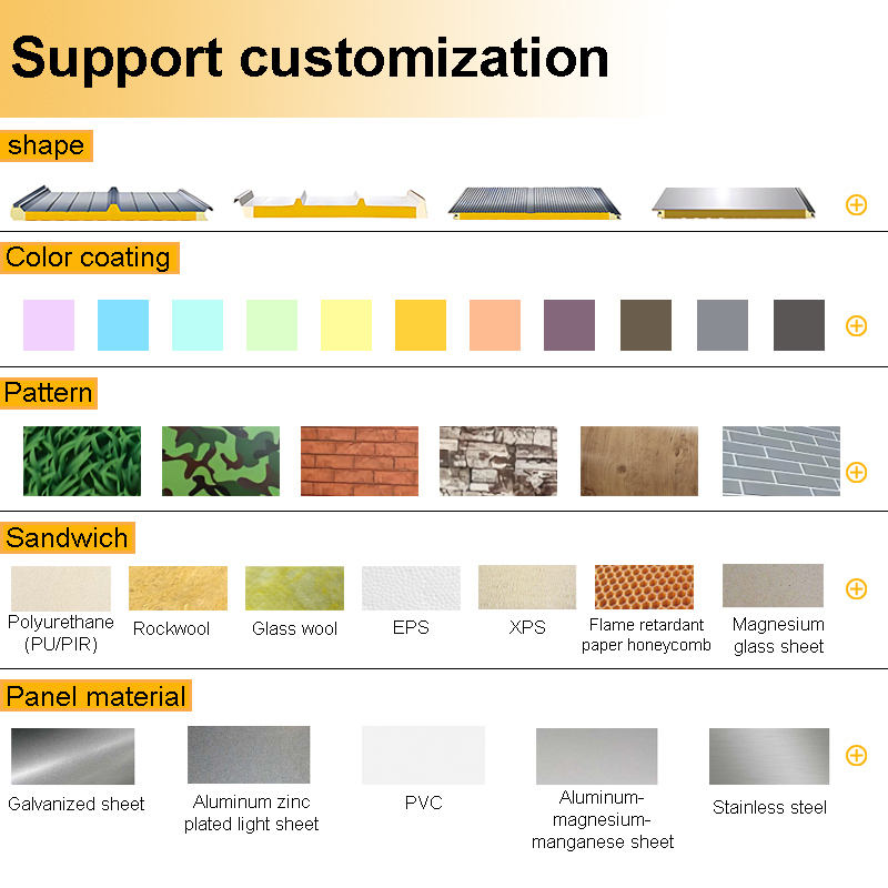Nom du produit:Panneaux sandwich en mousse de polyuréthane PUR pour chambre froide, panneau PU