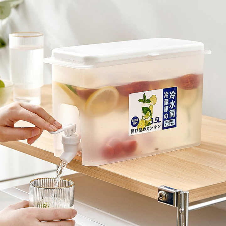 Carafe à eau froide, bouilloire, jus de citron, thé, 3,5 l, réfrigérateur, boîte de rangement, boissons froides, distributeur de boissons avec robinet