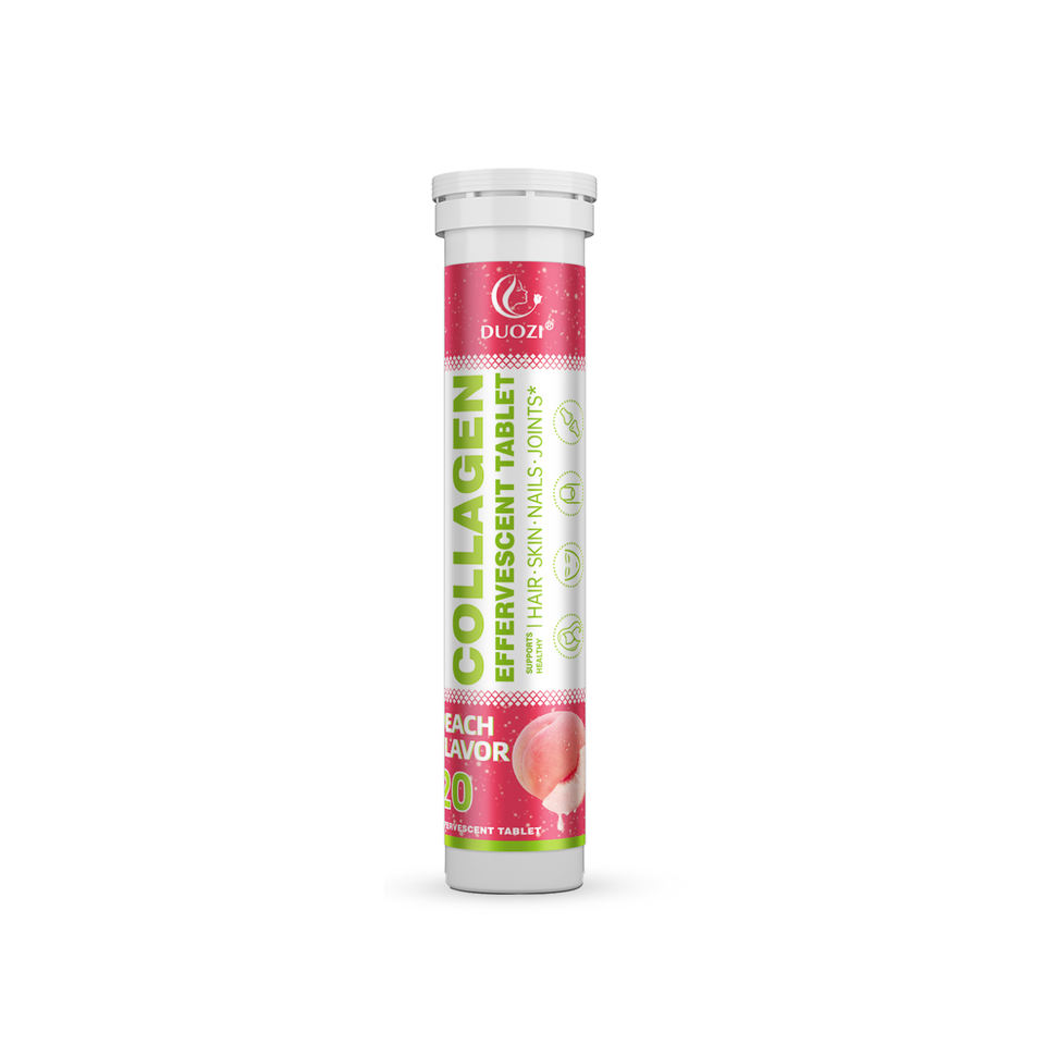 Comprimés effervescents de collagène saveur pêche - Complément anti-âge pour éclaircir la peau, les cheveux, les ongles, les articulations, comprimés de collagène et de vitamines