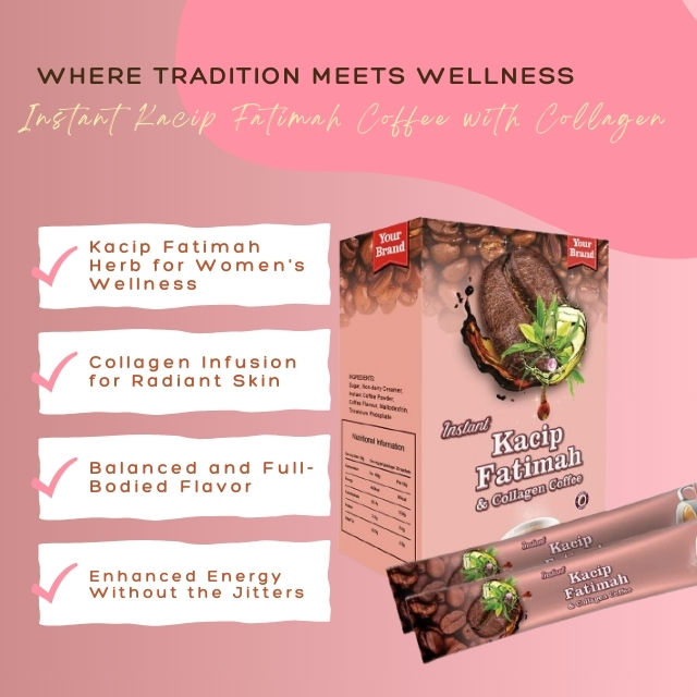 Kacip Fatimah, collagène, café instantané, crèmeIngrédients