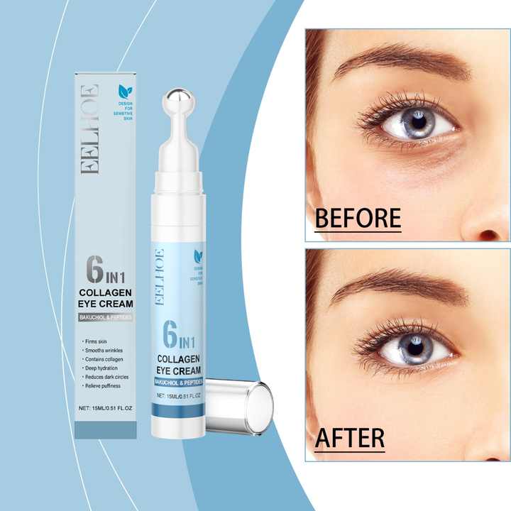 Crème Contour des Yeux au Collagène Formule Personnalisée 6-en-1 Anti-Rides Bakuchiol Traitement Contour des Yeux à Bille Roulante Anti-Cernes Raffermissant