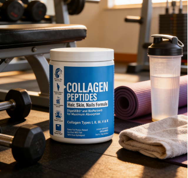 Poudre de peptides de collagène | Types I, II, III, V et X | avec DigeSEB & BioPerine pour la santé des cheveux, de la peau, des ongles et des articulations
