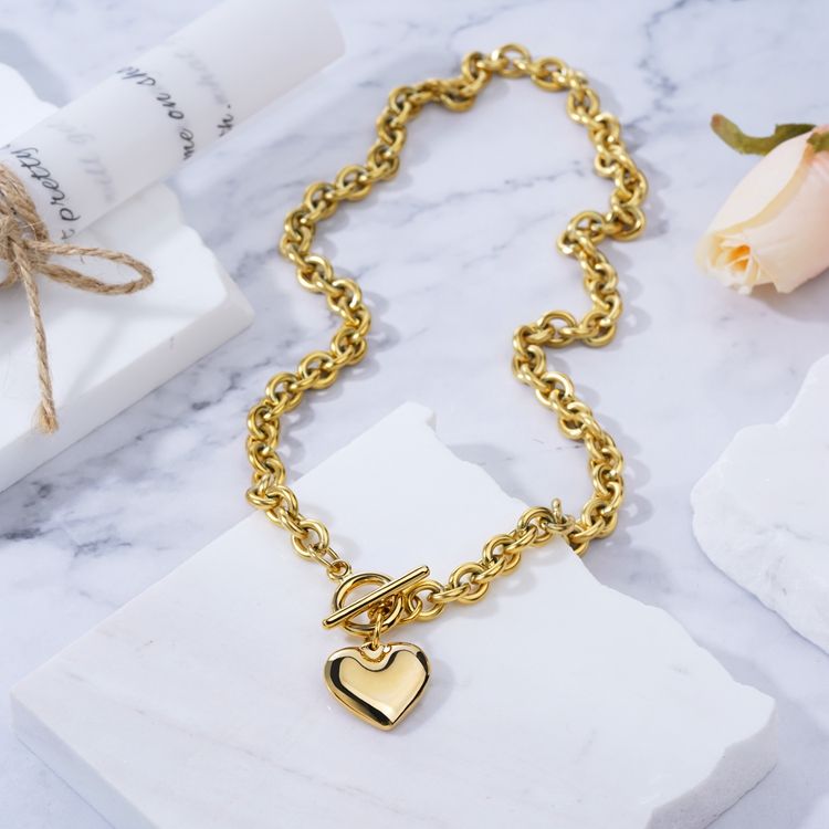 Collana Acciaio Inox 18K Gold Plated Love Heart Necklace Bracelets Stereoscopic Heart Ot Clasp Necklace for Women Gift