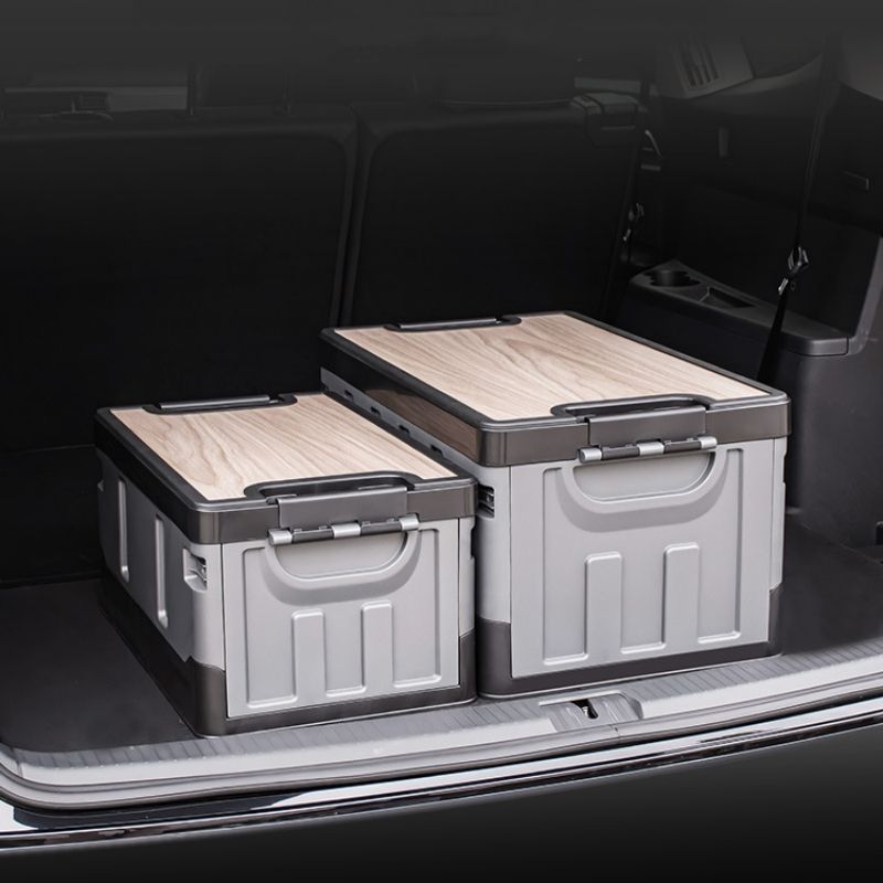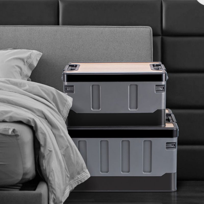 Boîte de rangement pliable 35L-65L couvercles en bois classiques grande caisse pliable rectangulaire en plastique stockage fonctionnel de vêtements de Camping