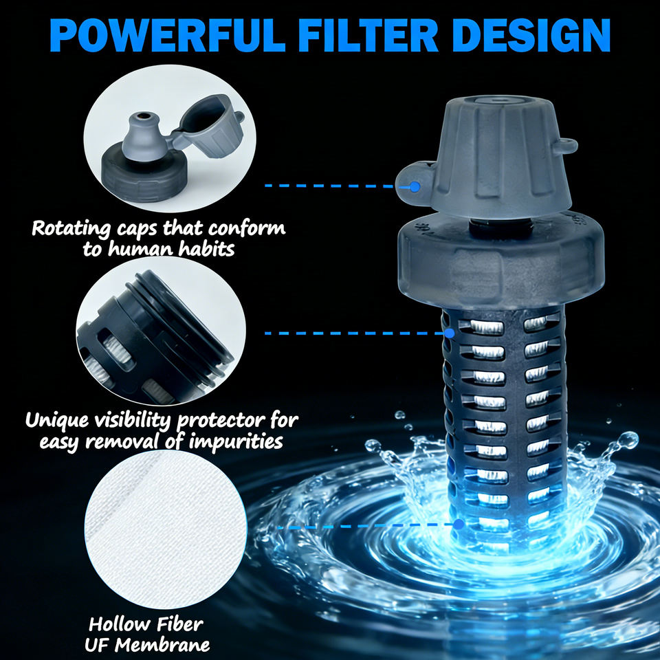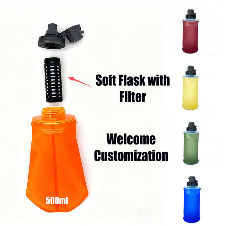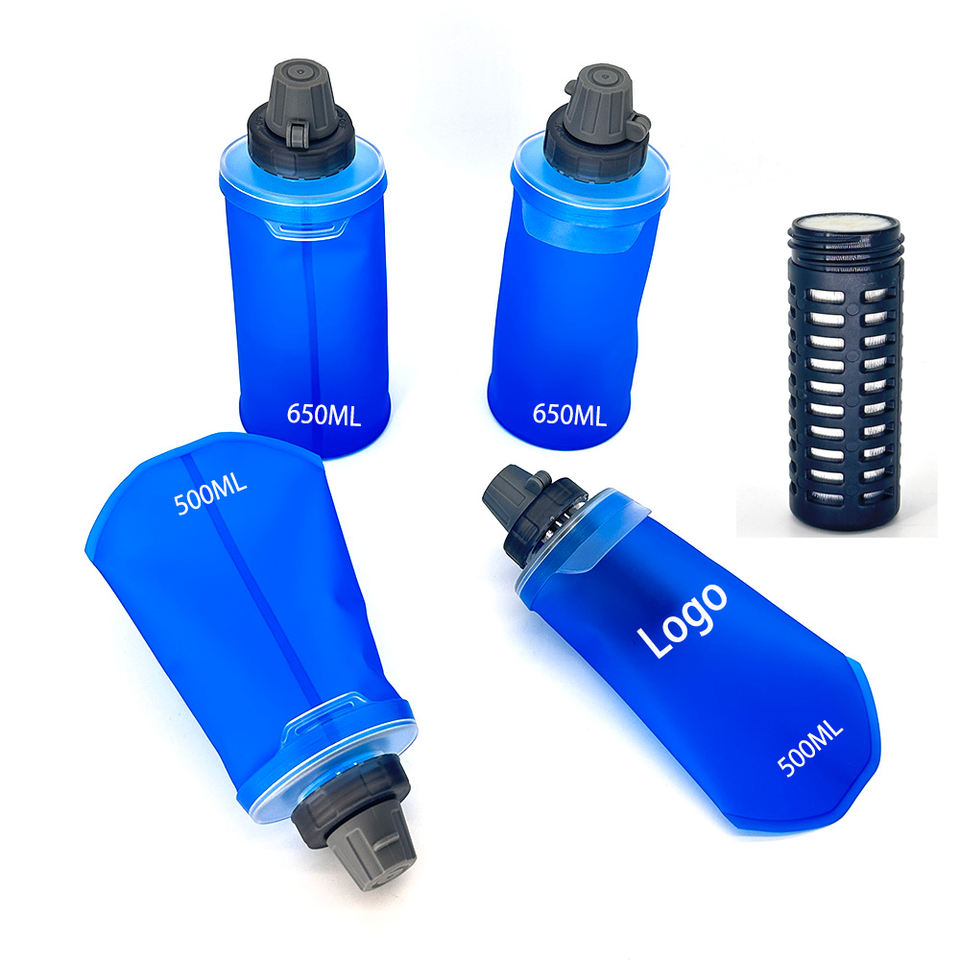 Gourde souple filtrante pliable, Pichets et bouteilles filtrantes à eau, Bouteille filtrante à eau portable, Gourde souple en TPU 500ml 42mm