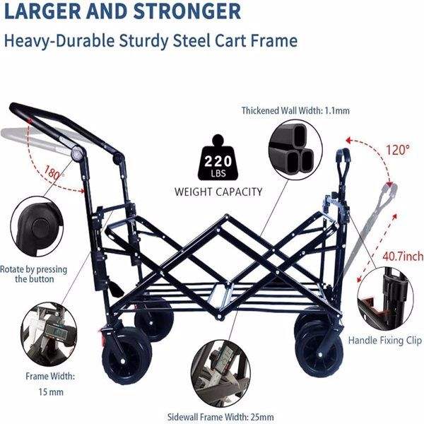 Collapsible Heavy Duty Folding Wagon Cart Removable Canopy 4\" Wide Large All Terrain Wheels Adjustable Brake Handles Camping