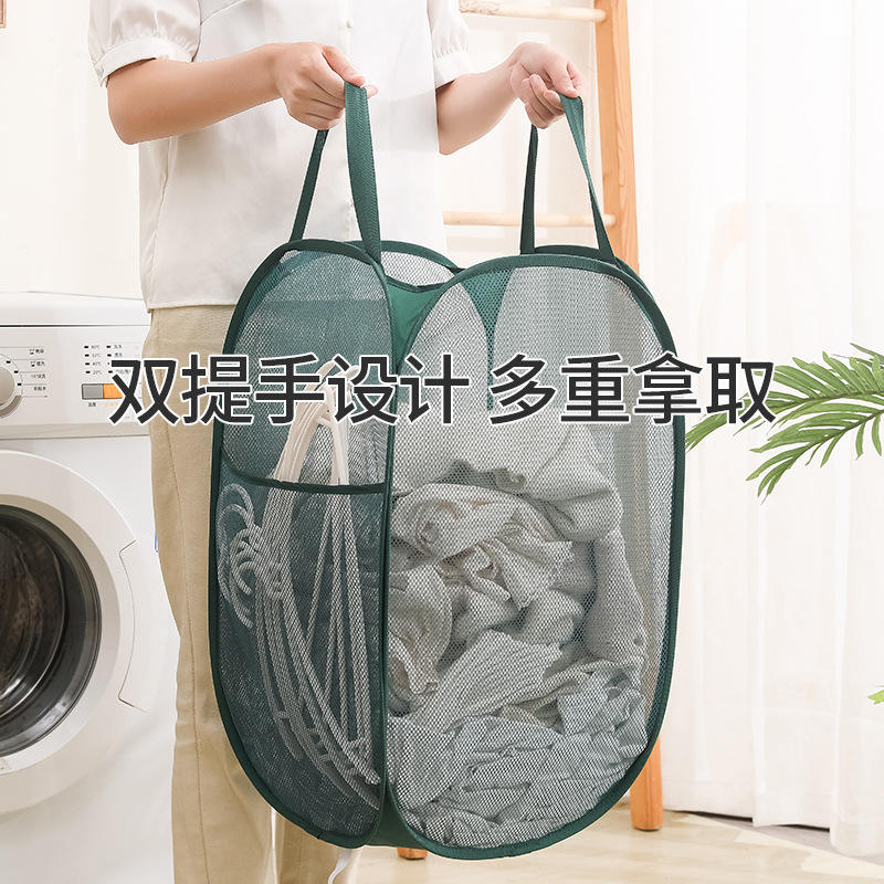 Panier à linge pliable de grande taille, en maille, pour le rangement des vêtements, utilisation dans la salle de bain