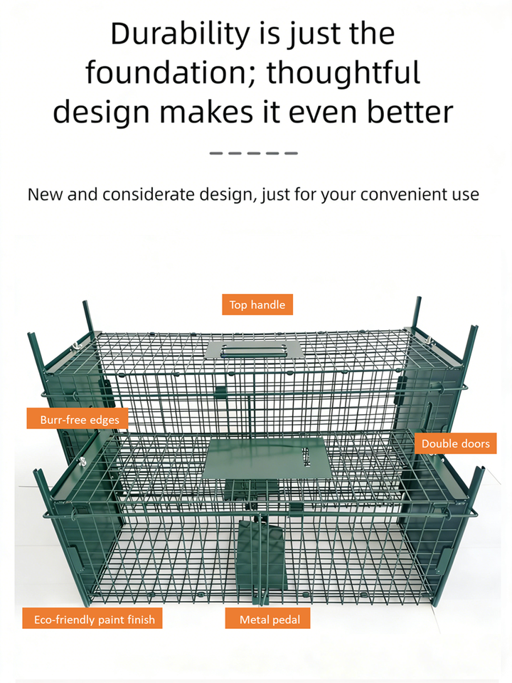 Cage de capture d'animaux vivants à double porte, respectueuse