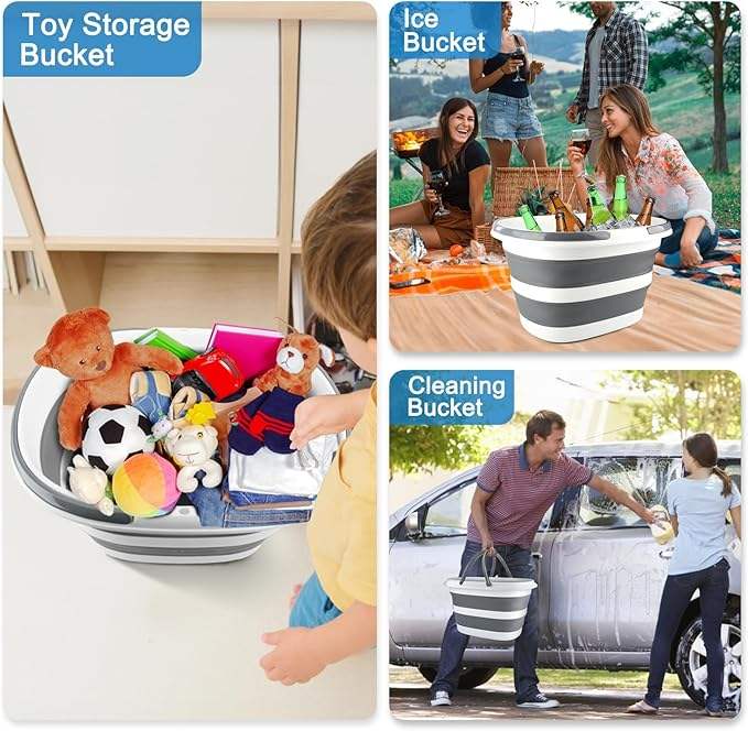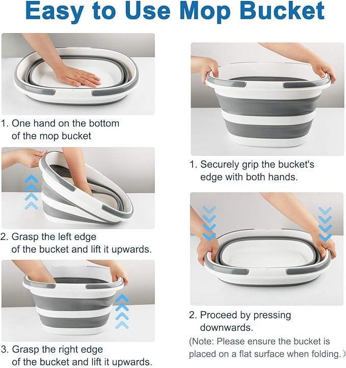 Seau à serpillière pliable avec poignée pour le nettoyage, seau carré en silicone de 16 L pour le nettoyage des fenêtres ou le lavage de voiture
