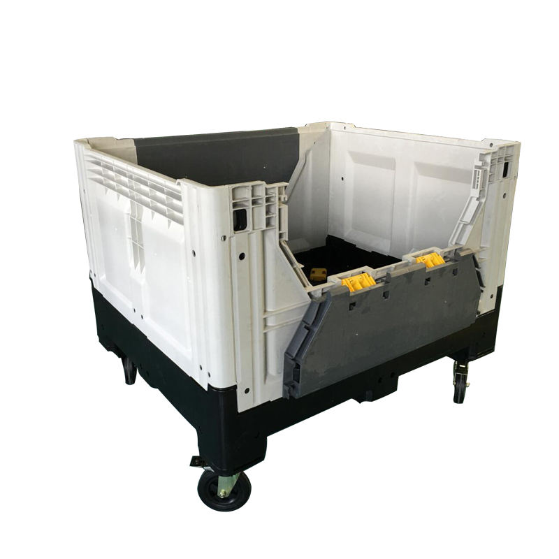 Boîte à palettes pliable avec roues, empilable, en plastique, 700L PE, boîte de rangement en plastique de 100 litres, boîte solide pliable ISO, entrée 4 voies, 1t