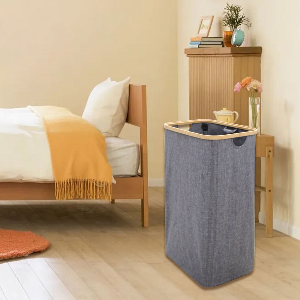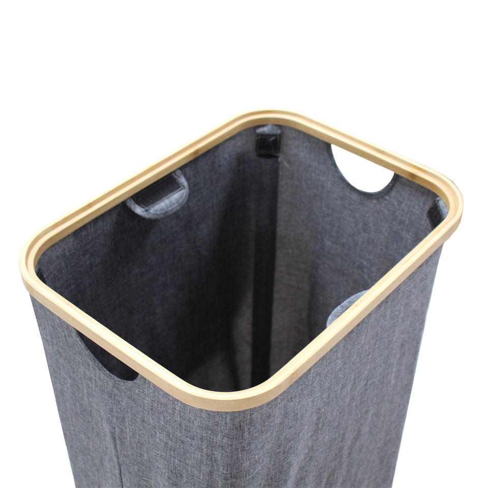 Paniers à linge ronds pliables pour vêtements Cadre de rangement en bois et bambou personnalisé Paniers à linge pliables