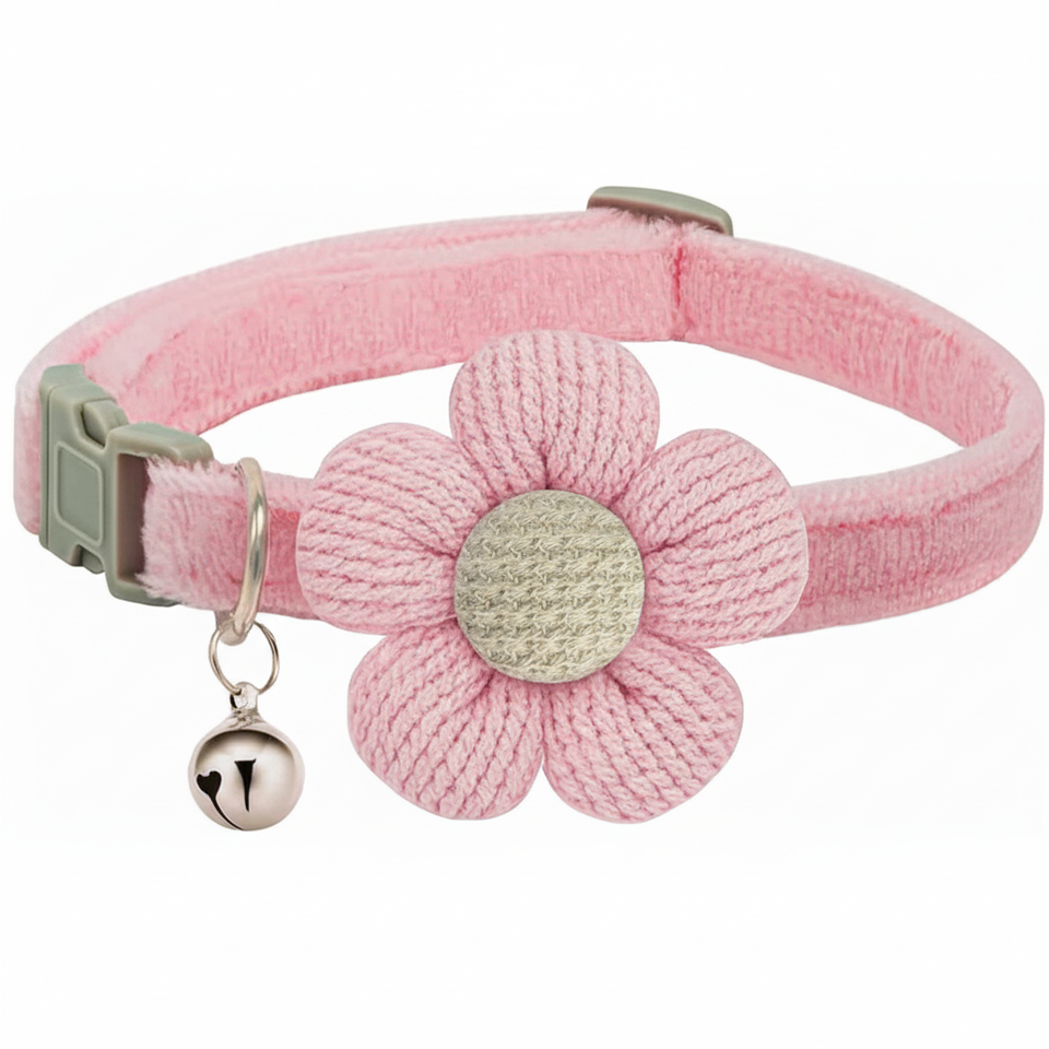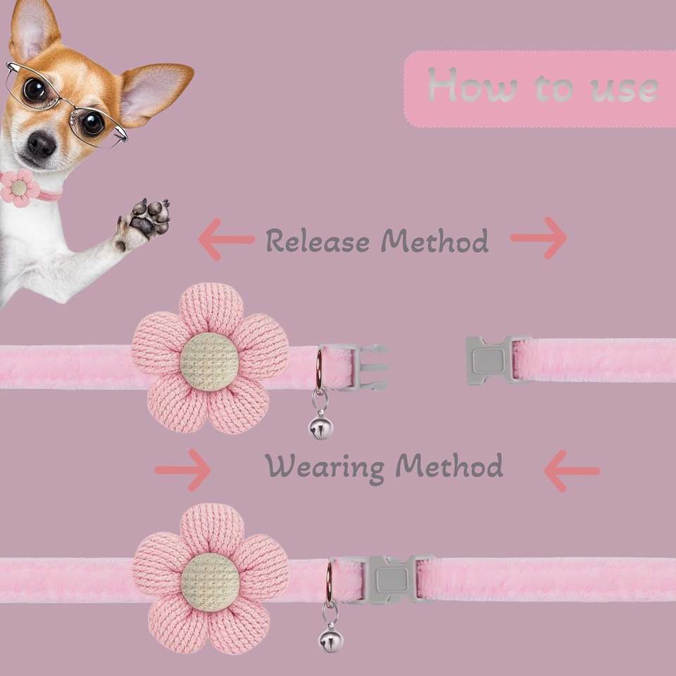 Collar Flower Quick Release XS Collar for Reptiles with Bell (Pink) MUZIEBA Suede