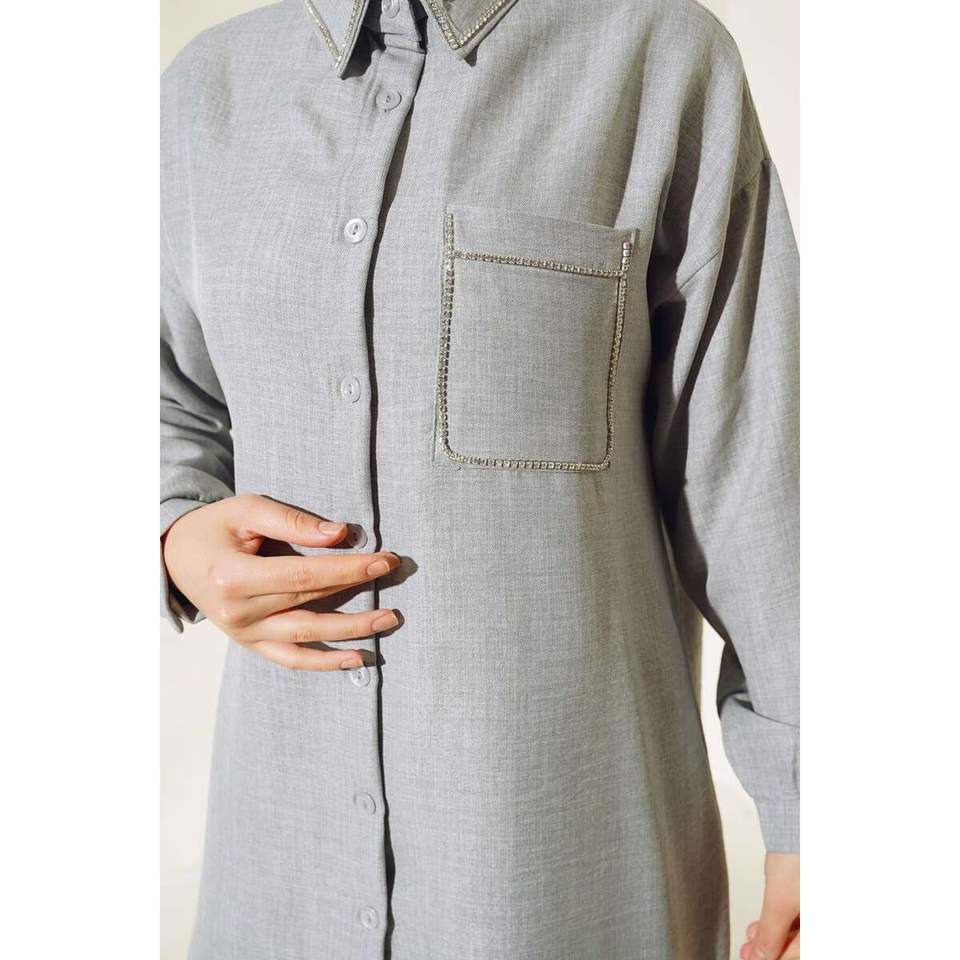 Ensemble 2 pièces en lin lapidé avec col et poche Gris