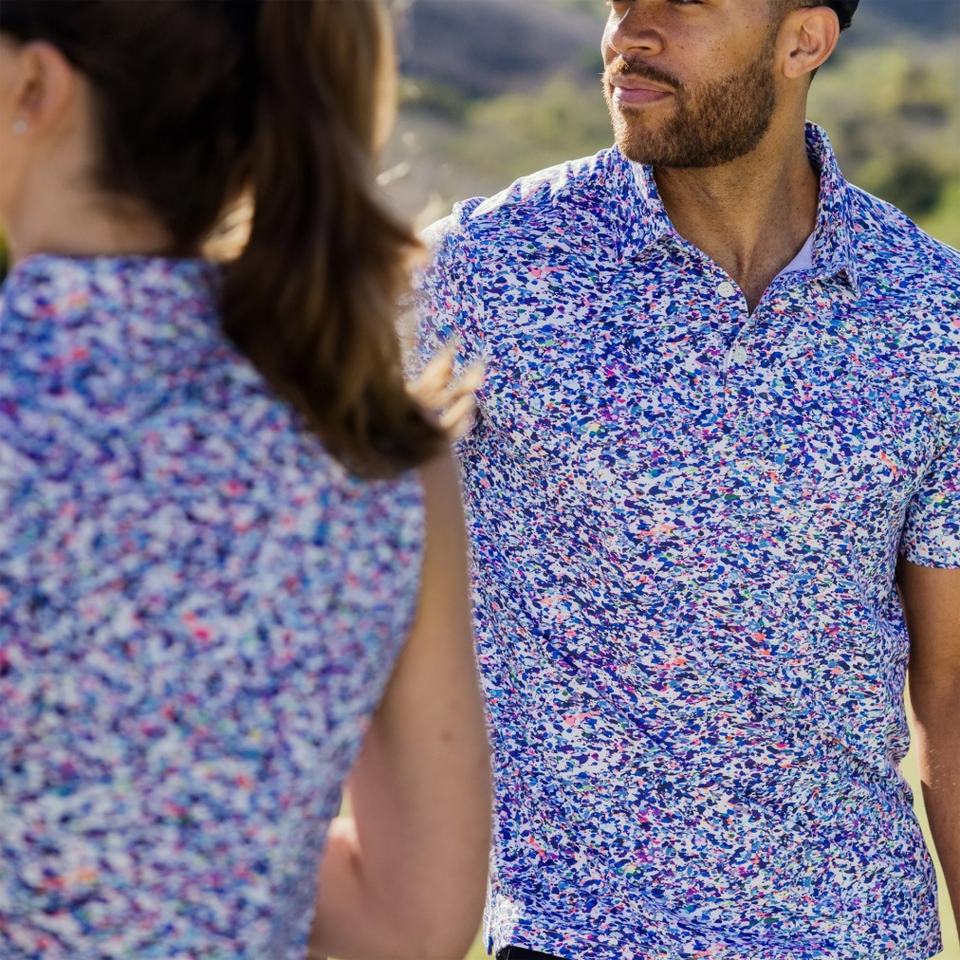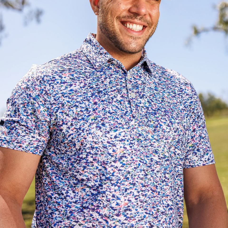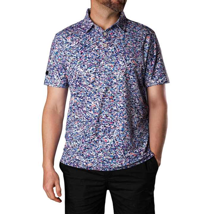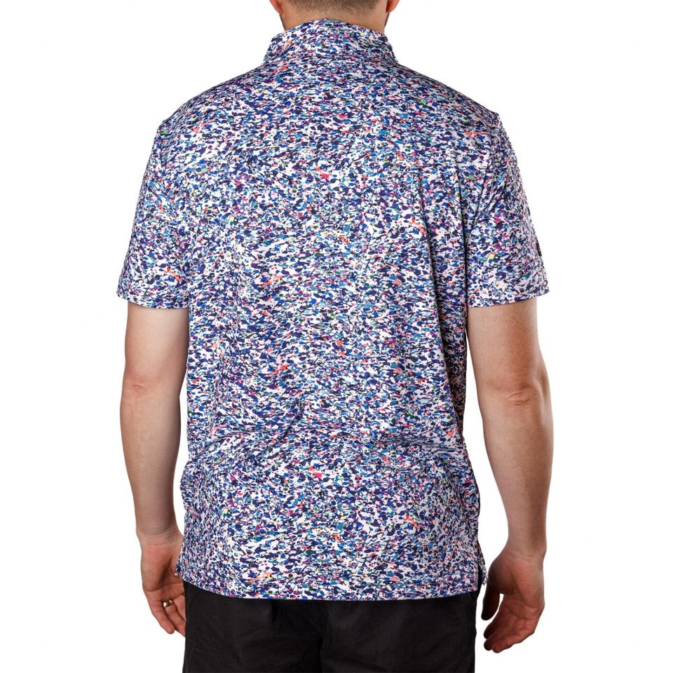 Polo de golf rétro pour homme à manches courtes, sans col, en polyester, à deux boutons, motif pique, style football
