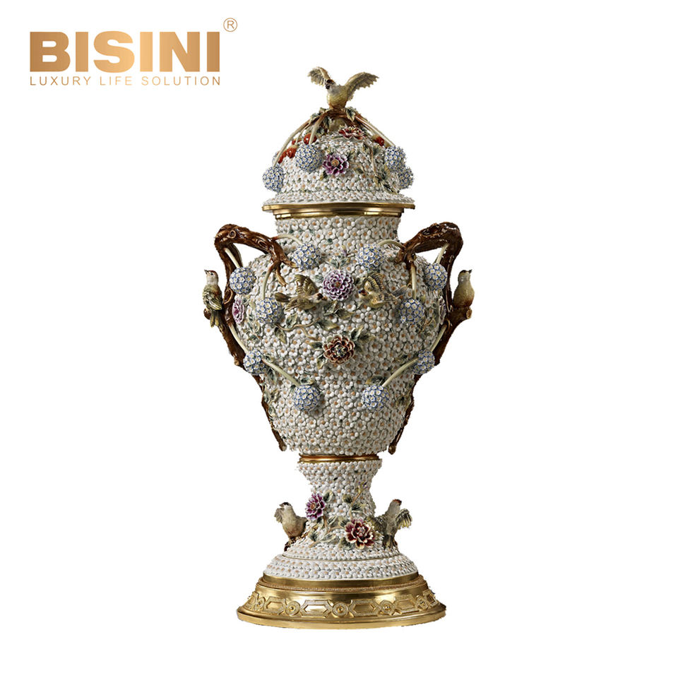 Collectible and Valuable French Style Floral &Birds Porcelain Copper Grandfather Clock Colorful Flowers Trophy Shape Floor Clock