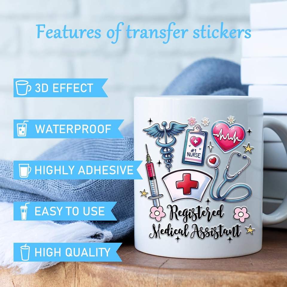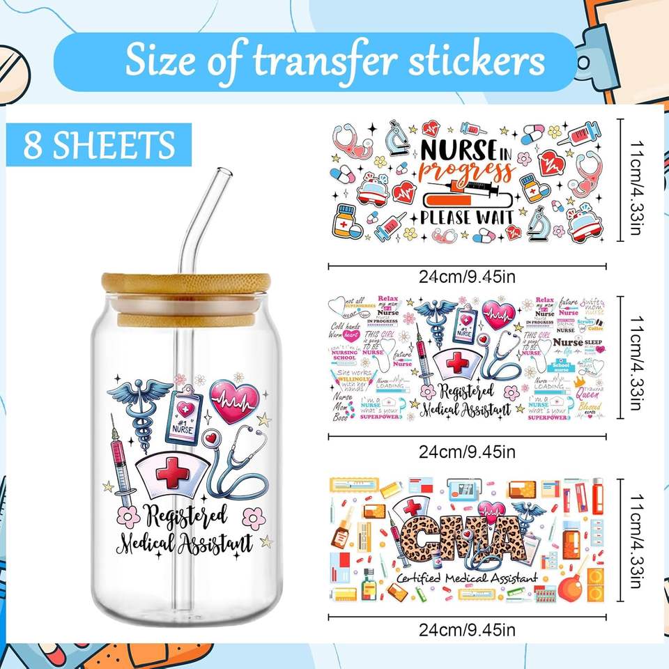 Collections Autocollants de transfert UV Autocollants de transfert UV de tasse en verre lavable écologique avec impression HD et conception complète