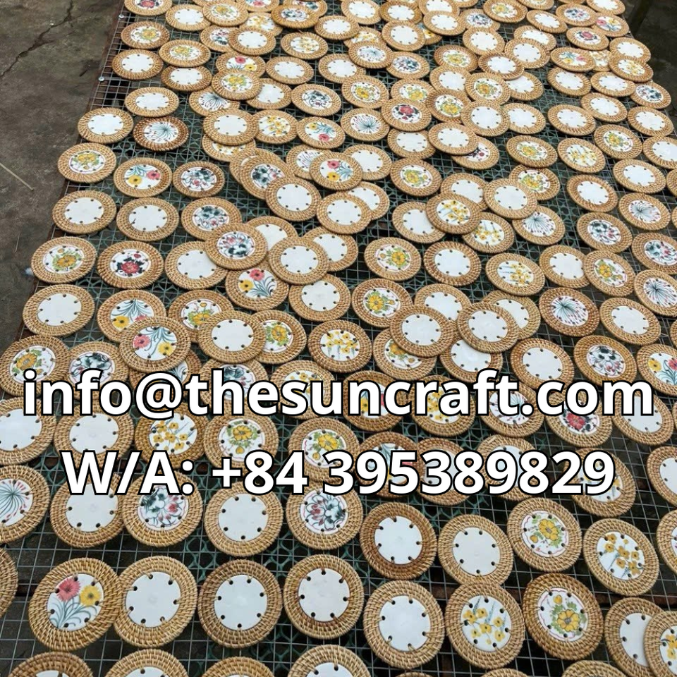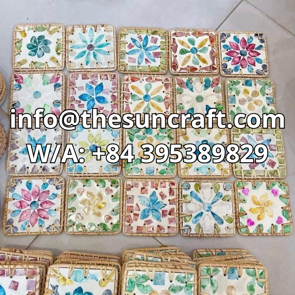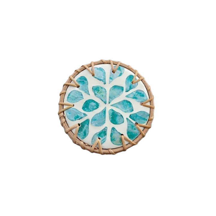 Sous-verre édition collector incrusté de nacre - Artisanat finition rotin - Tapis à thé de luxe en nacre