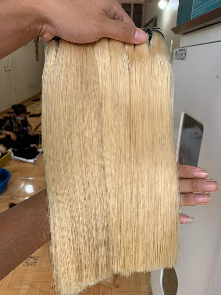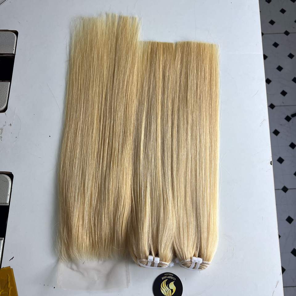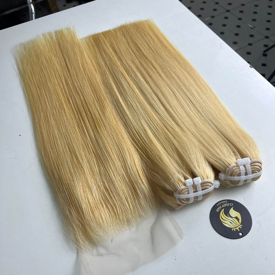 Cheveux vierges 100% humains vietnamiens couleur 613, lisses comme des baguettes, provenant d'un seul donneur, extensions à double trame, différentes tailles de 8 à 40 pouces