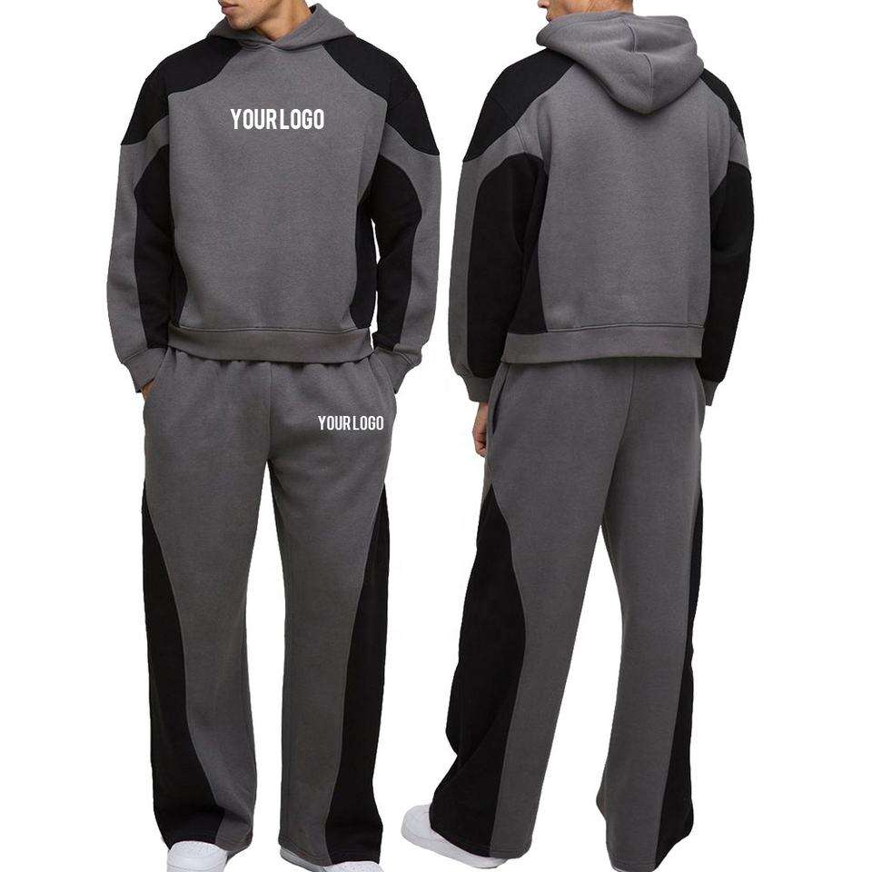 Ensemble sweat-shirt et pantalon de survêtement pour homme, coupe régulière, blocs de couleur, streetwear, surdimensionné, léger, imprimé, 100% coton, pantalon évasé
