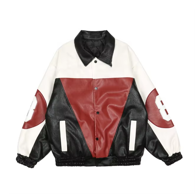 Veste en cuir artificiel à blocs de couleur pour hommes, veste décontractée à fermeture éclair, manteau brodé de haute qualité, coupe-vent en gros
