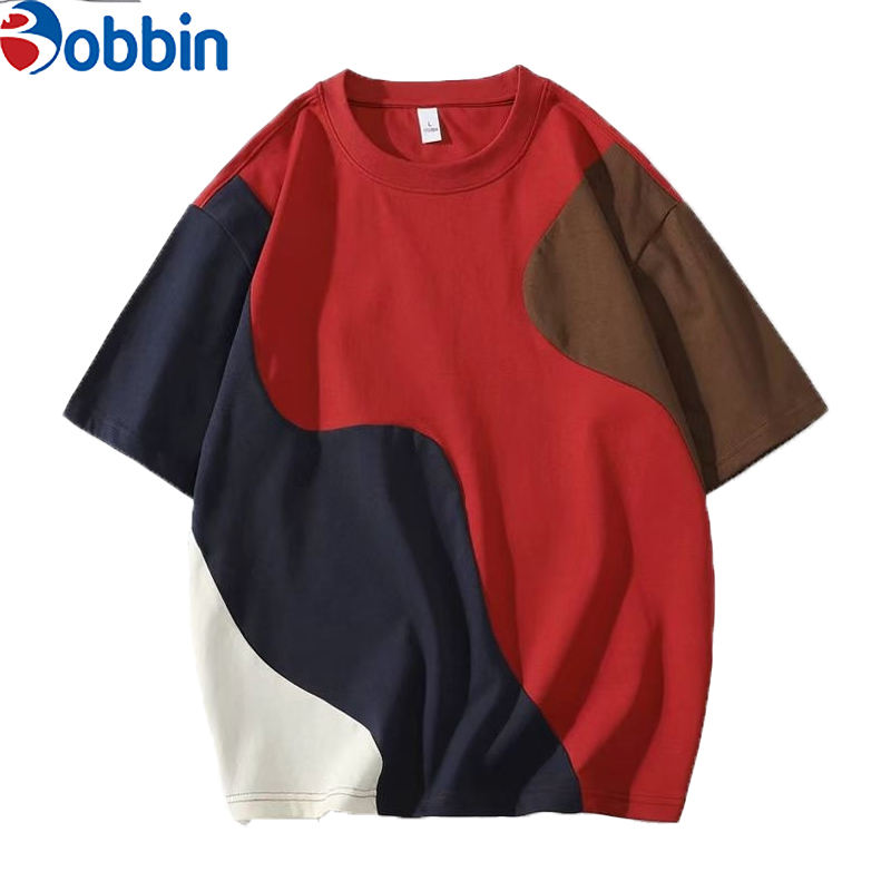 T-shirt Homme Col Rond Oversize Imprimé Personnalisé Color Block 100% Coton Grande Taille Patchwork Grammage Lourd 220 Grammes Décontracté Vierge