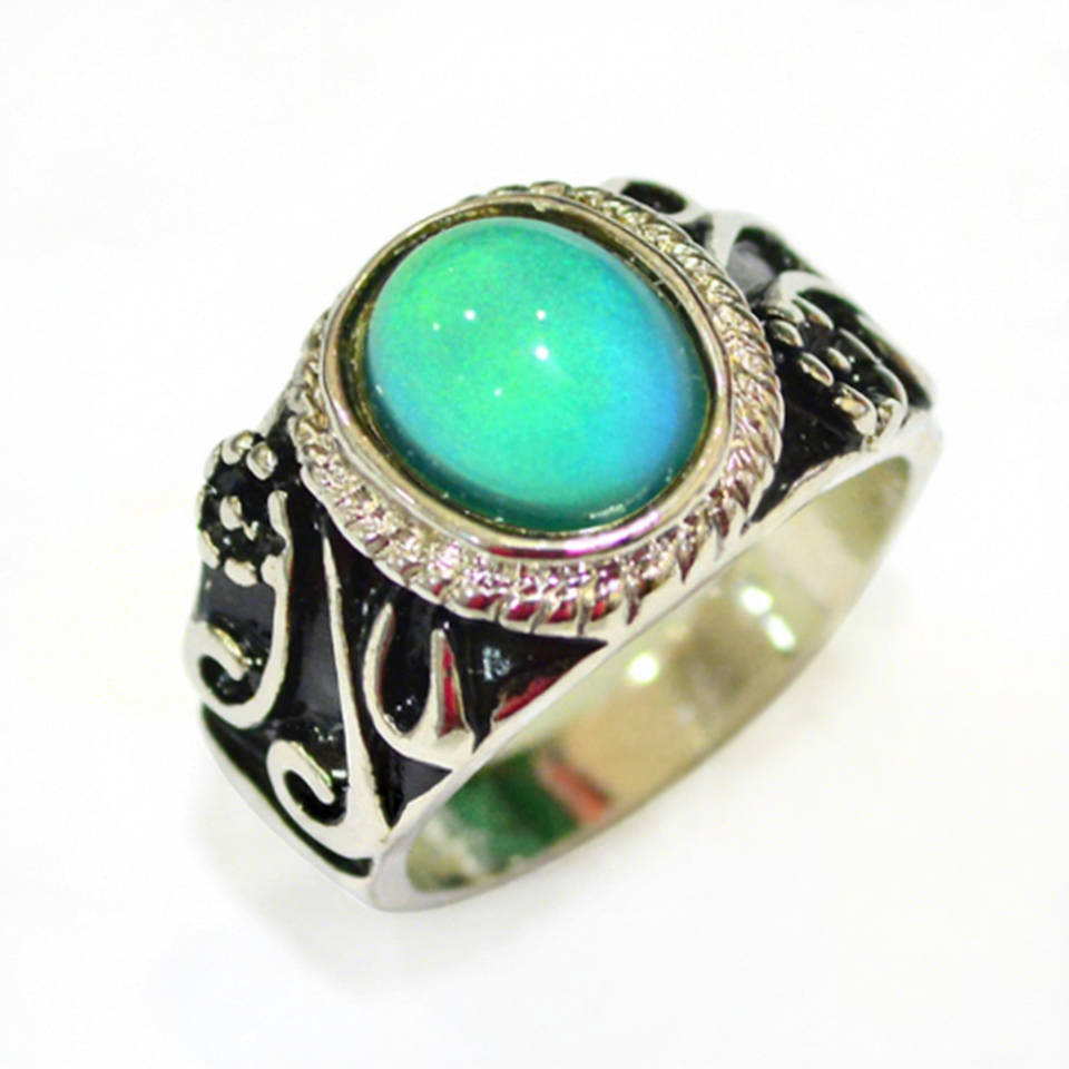 PHILCHA Bagues en alliage de zinc à couleur changeante avec serti clos 8MM*10MM, pierres d'humeur à motif spécial, unisexe