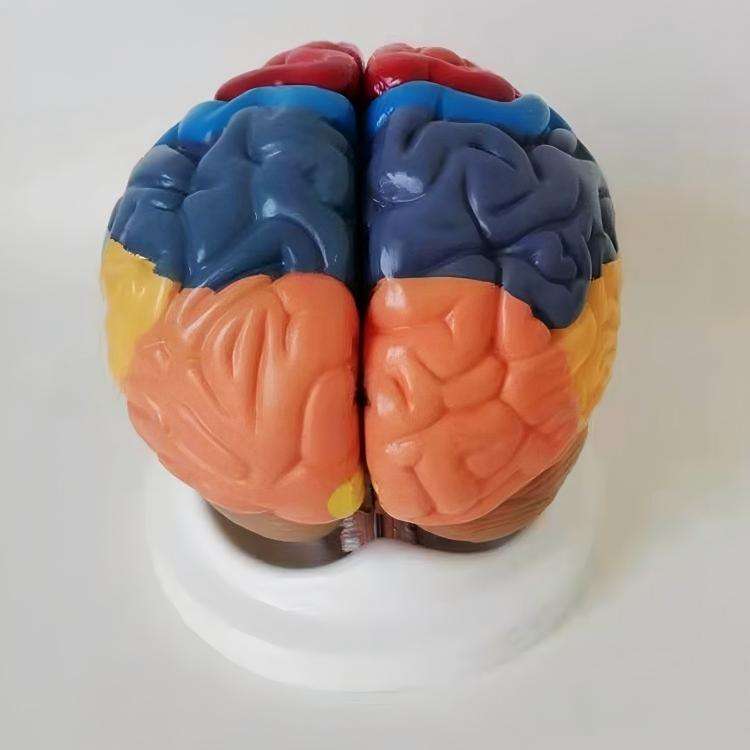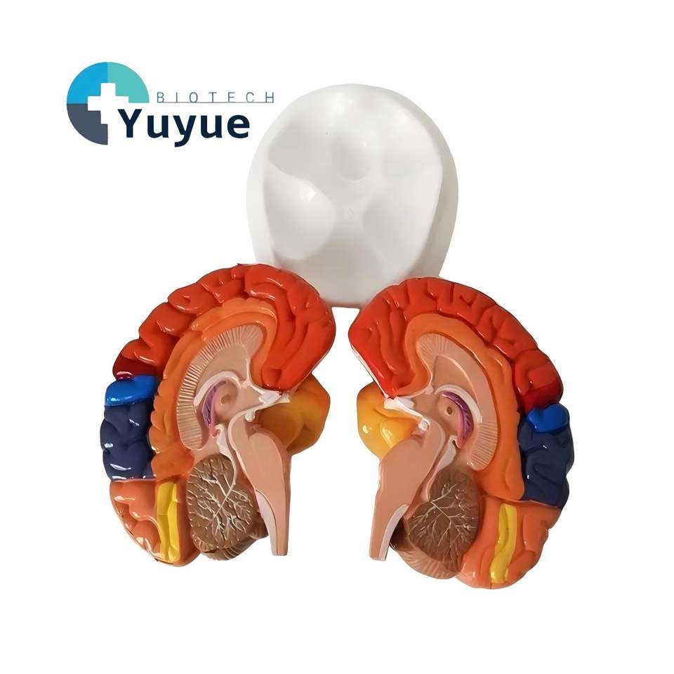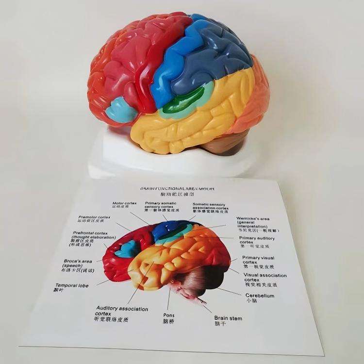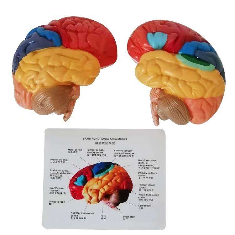 Modèle anatomique des zones fonctionnelles du cerveau humain, codées par couleur, en 2 parties, pour l'enseignement de la neurosciences
