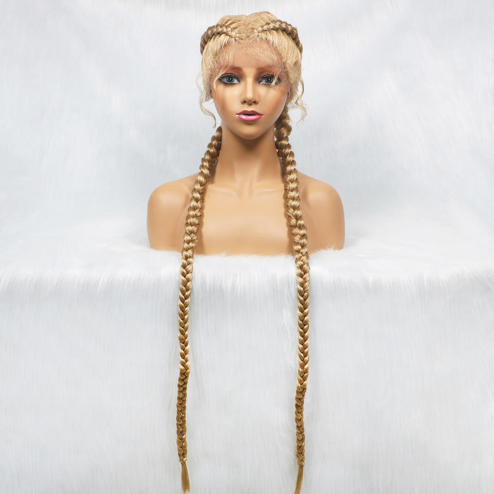 Couleur Film Princesse 2 Synthétique Pré Tressé Queue De Cheval Extra Longue Cosplay Perruque Blonde Aucune Dentelle Perruques Température Synthétique