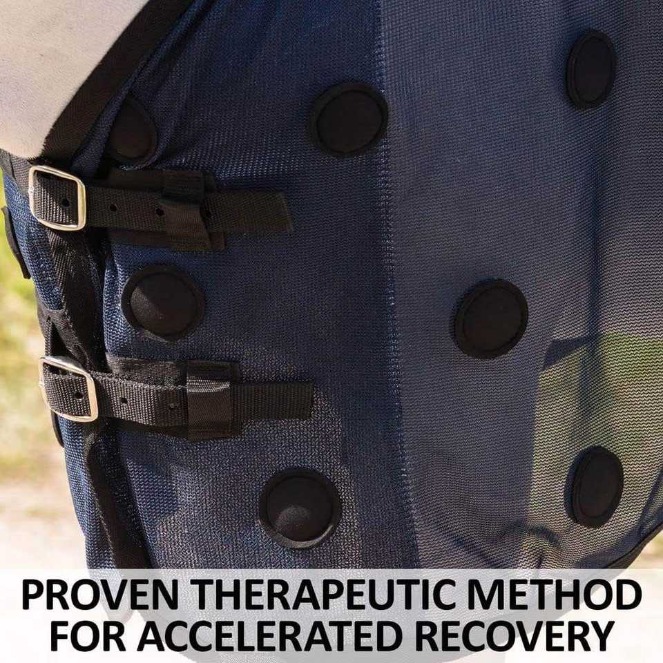 Couverture magnétique pour chevaux, couleur marine, pour le bien-être du cheval, accélère la guérison, plus de 90 aimants unipolaires, thérapie magnétique