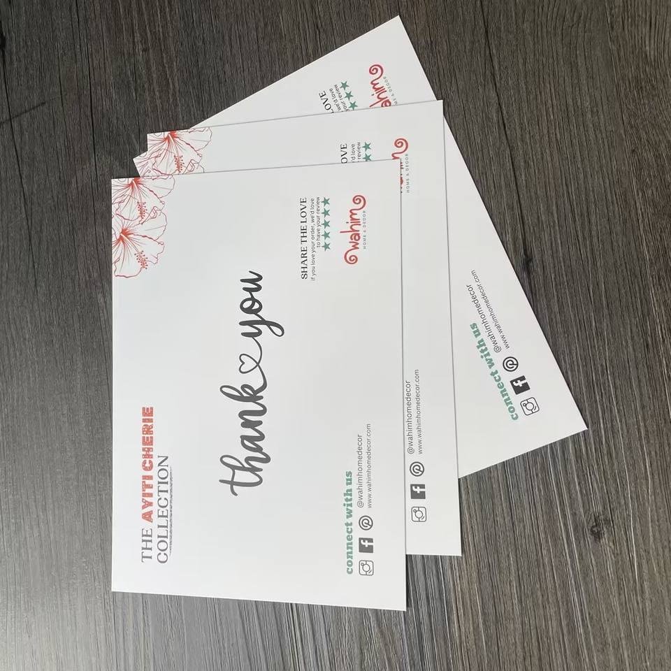 Cartes de remerciement imprimées en couleur, cartes de vœux personnalisées pour le commerce électronique, après-vente et emballage cadeau, conception de cartes de visite