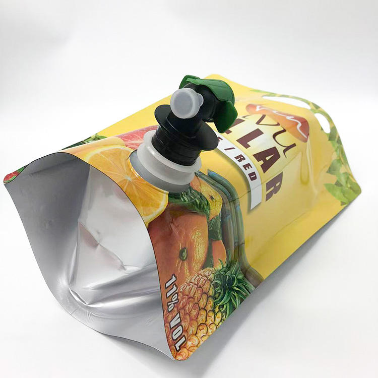 Sac d'emballage en aluminium 1,5 L avec impression couleur, double fond, pochette autoportante portable avec valve pour jus et boissons