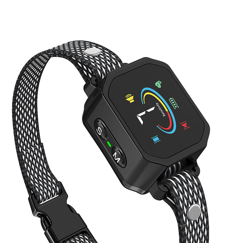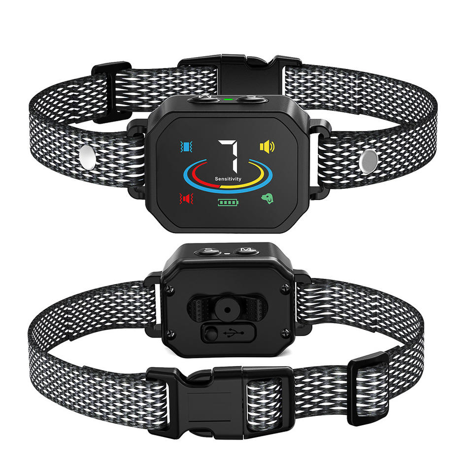 Collier de dressage pour chien anti-aboiement à écran couleur, double vibration, entraîneur automatique, matériau ABS noir 985A