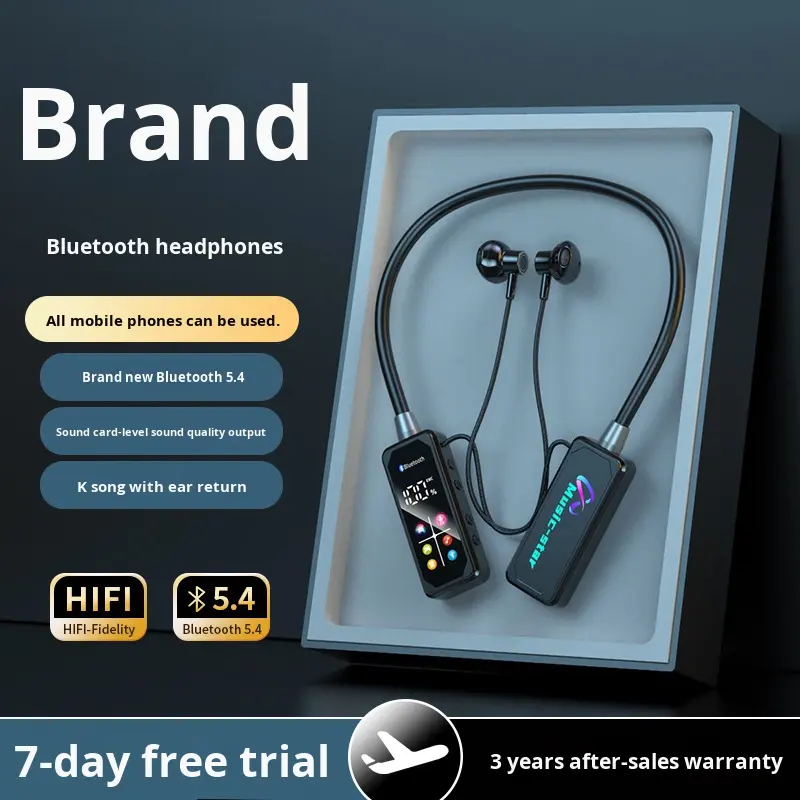 Écouteurs Sportifs à Bandeau de Cou avec Écran Couleur, Affichage Numérique LED, Chipset JL, Karaoké, Streaming en Direct, Étanchéité IPX-5, Réduction Active du Bruit (ANC) pour Bluetooth 5.0