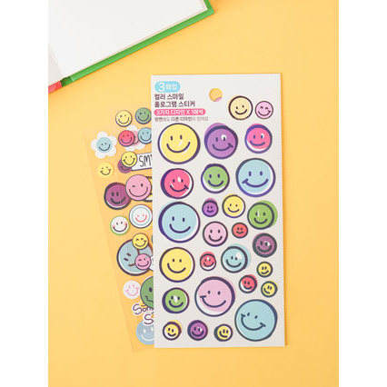 Autocollants de paillettes d'hologramme de sourire de couleur Pack de 3 autocollants d'hologramme de PVC imprimés décoratifs imperméables de papier imprimé par PVC