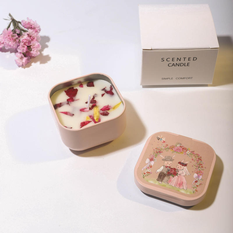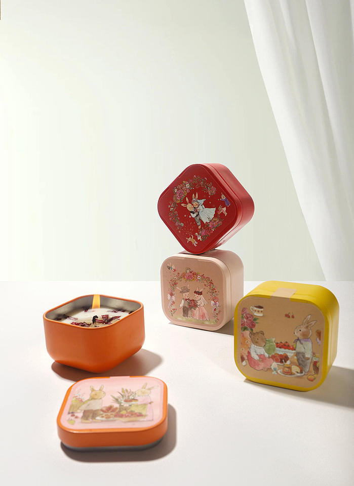 Bougie parfumée en cire de soja dans un pot en métal, motif lapin en sucre coloré, aromathérapie, cadeau de Noël et de Thanksgiving haut de gamme, vente en gros