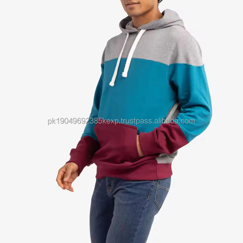Sweat-shirts pour hommes de haute qualité, style panneau de couleur, avec poches kangourou, cordon de serrage et capuche, prix bas