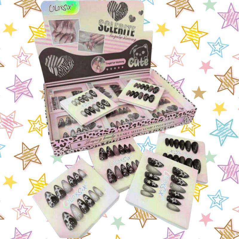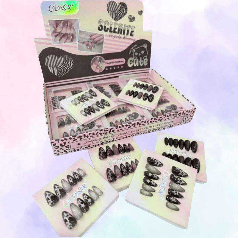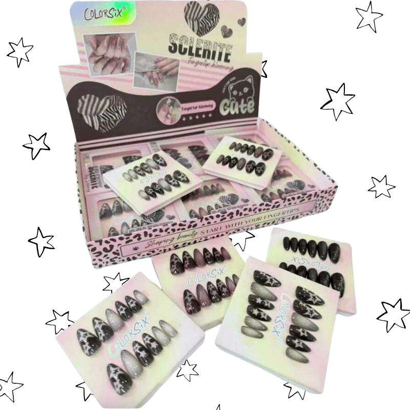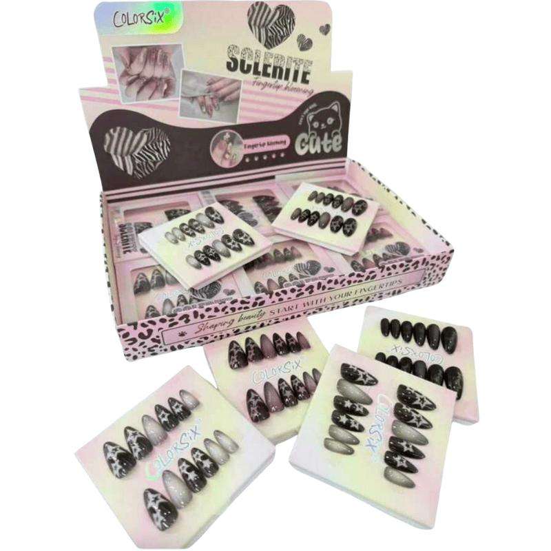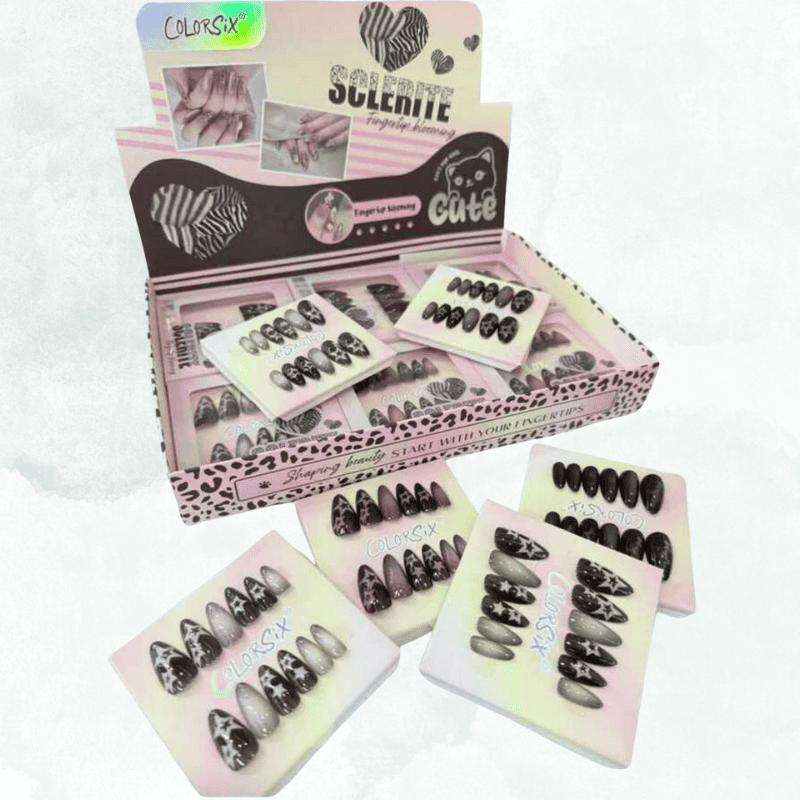 ColorSix – faux ongles artificiels, ensemble de 10 pièces, avec motif étoile et imprimé léopard, pour femmes et filles