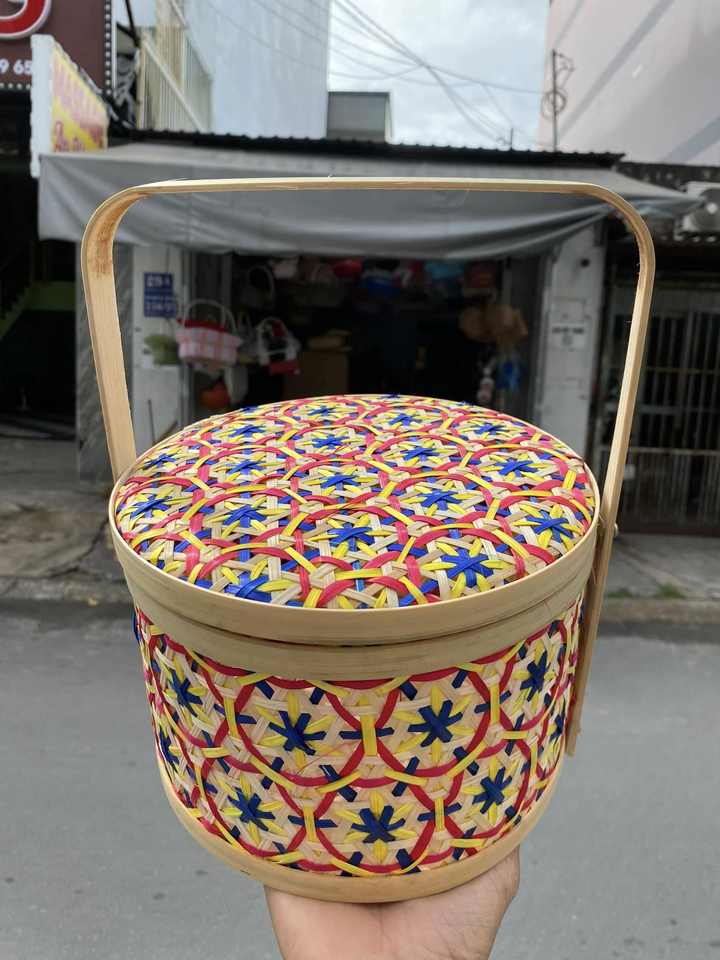 Panier cadeau en bambou coloré pour affichage de thé et de bonbons