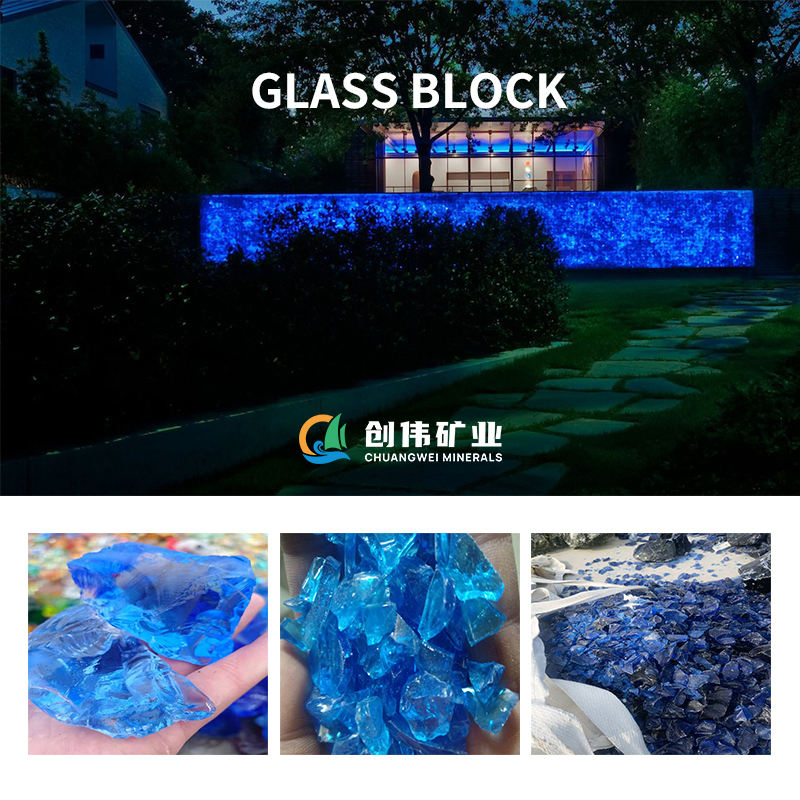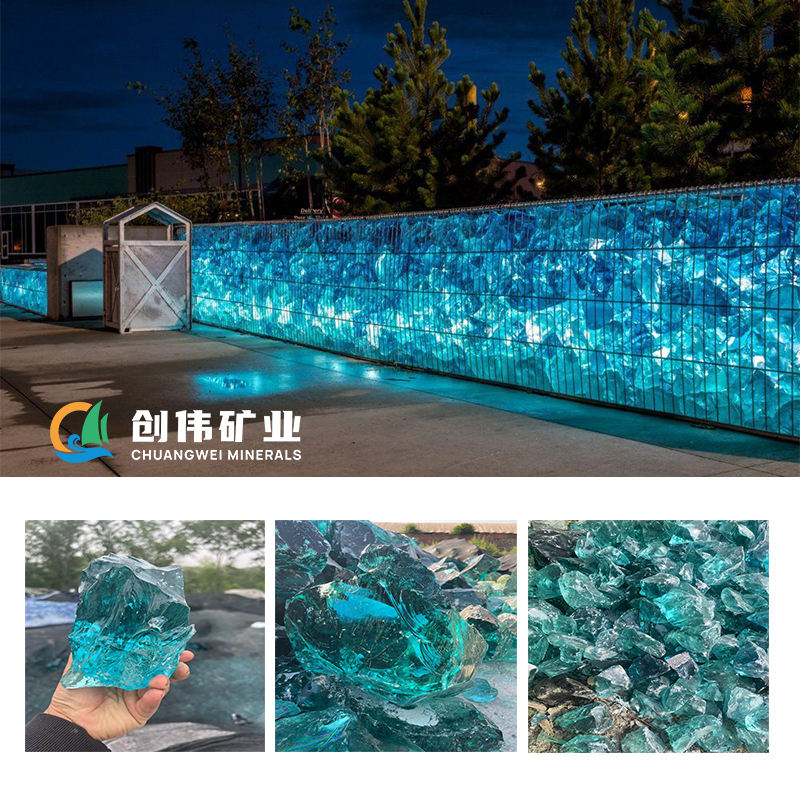 Grandes roches colorées en verre de scories d'aménagement paysager grandes roches en verre bleu mer décoratives pour mur de gabin