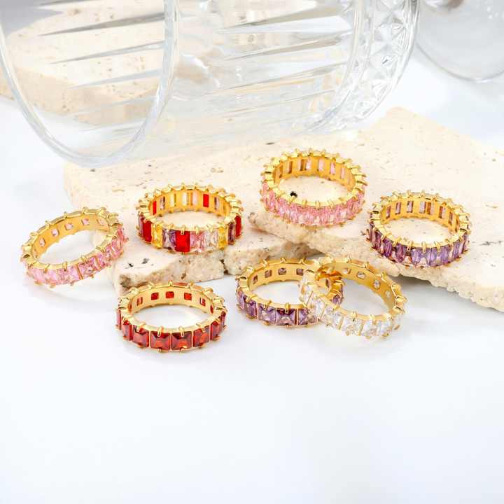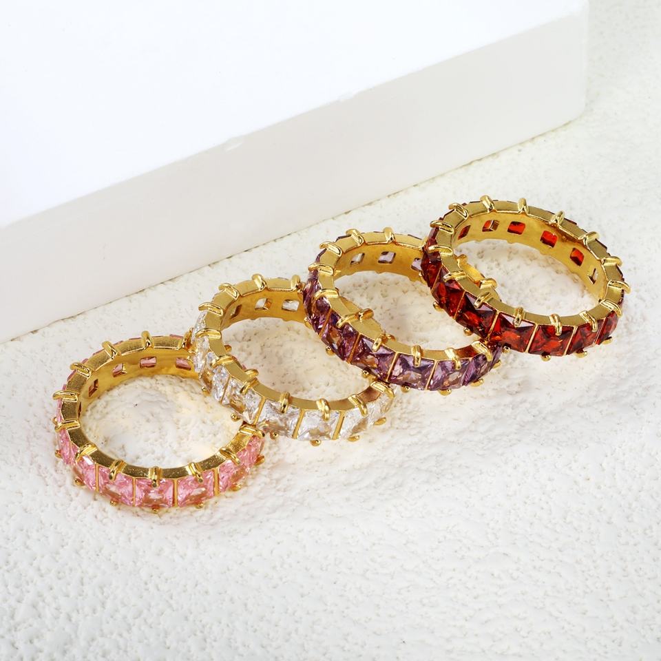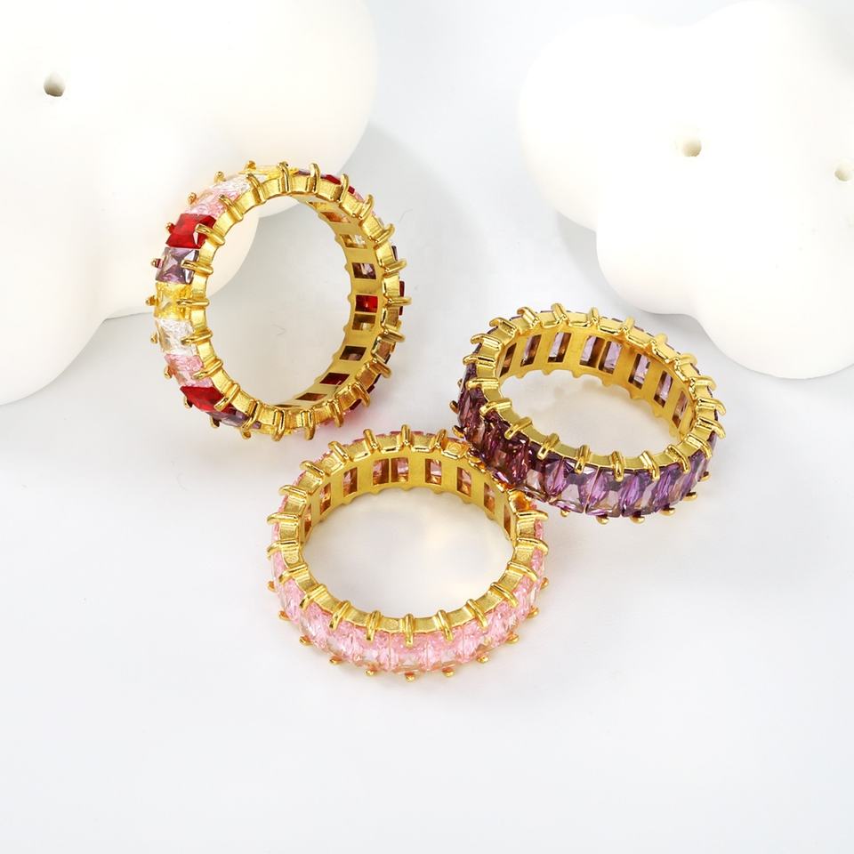 Colored Square Cubic Zirconia Waterproof 18K Gold Plated Rings No Tarnish Stainless Steel Fashion Jewelry Zircon Rings for Women