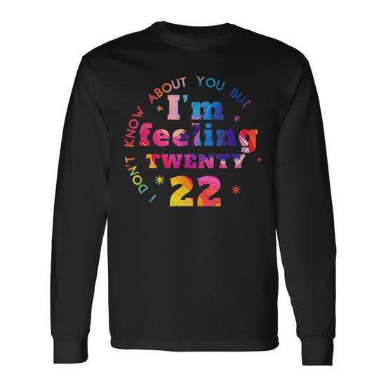 T-shirt à manches longues coloré 2022 avec la citation « Je ne sais pas ce que tu penses, mais je me sens vingt-deux ans » – Produit promotionnel
