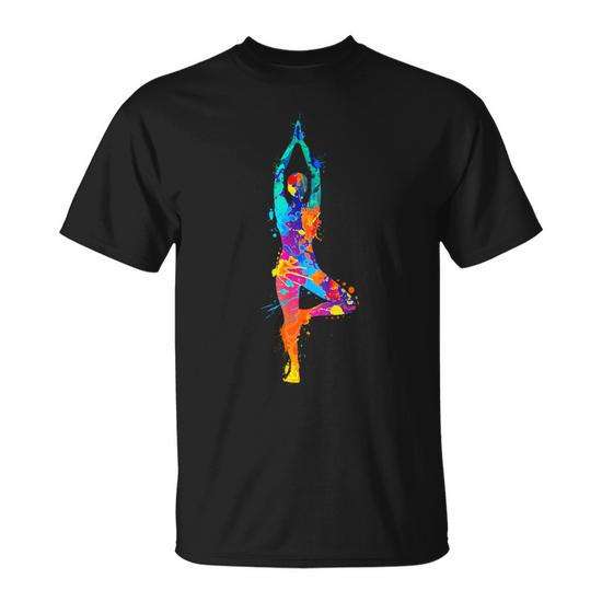 T-shirt promotionnel coloré avec motif d'arbre de yoga artistique en aquarelle