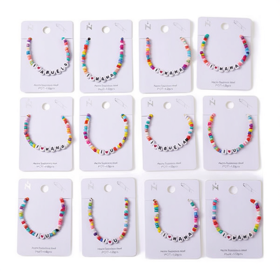 Bracelet perlé coloré en forme de lettre, Pulsera en acier inoxydable, fait main, lot de 12 pièces